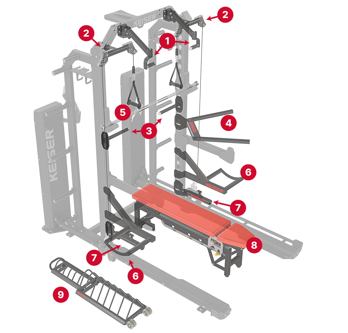 Attach cables to the Keiser Lightweight Bar or a wide range of Infinity accessories.
