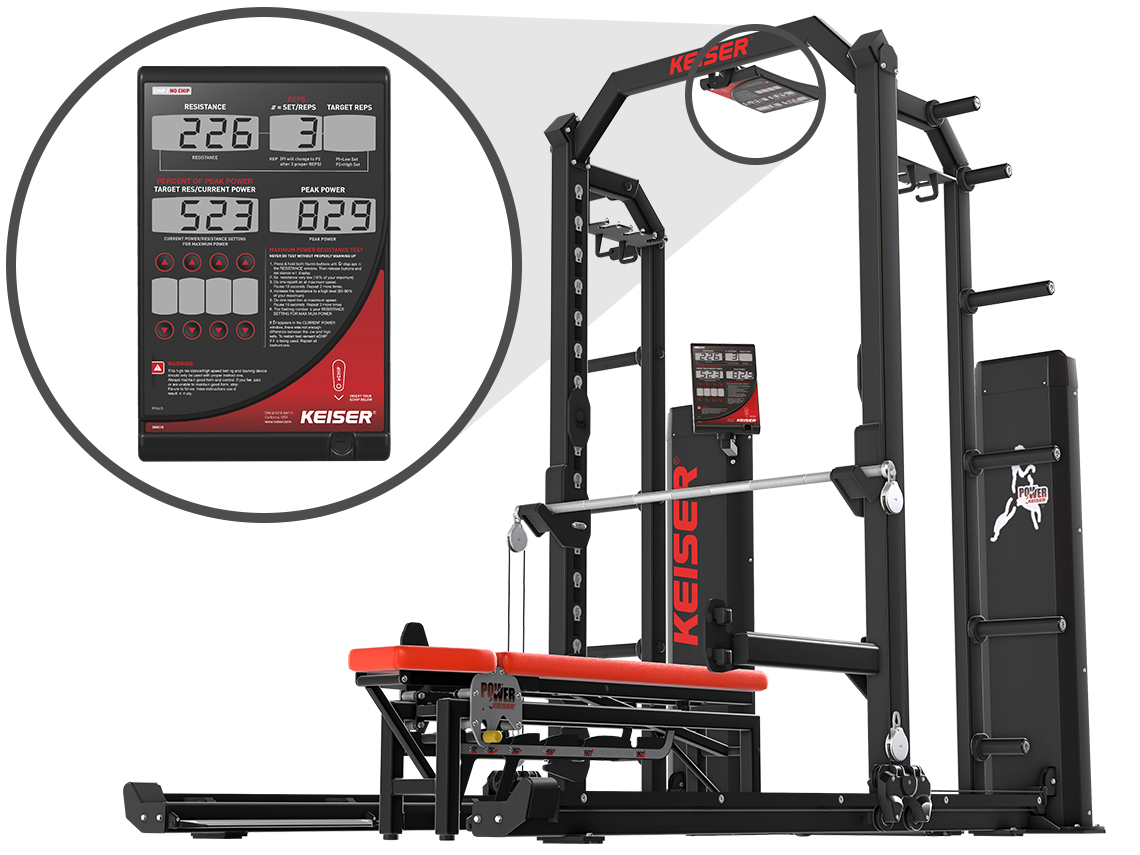 Research indicates real-time visual feedback may increase athlete intent. That’s why Keiser’s A300 racks include a display that can be read while benchpressing.