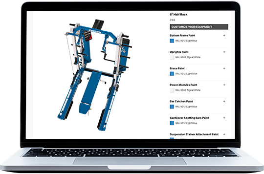 Choose colors, apply your logo, and select accessories with the Keiser Equipment Configurator .