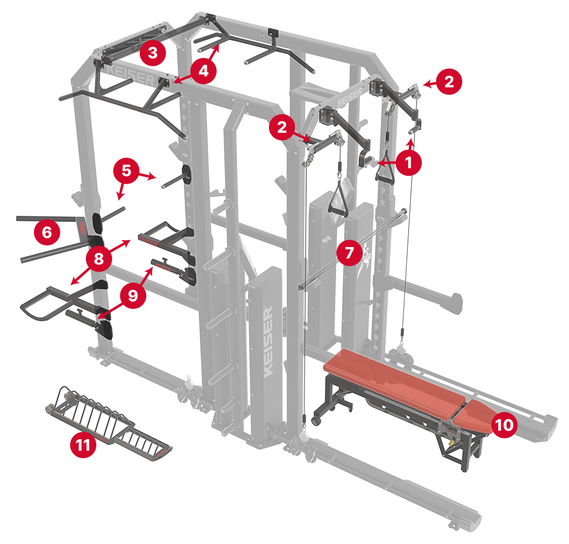 Attach cables to the Keiser Lightweight Bar or a wide range of Infinity accessories.