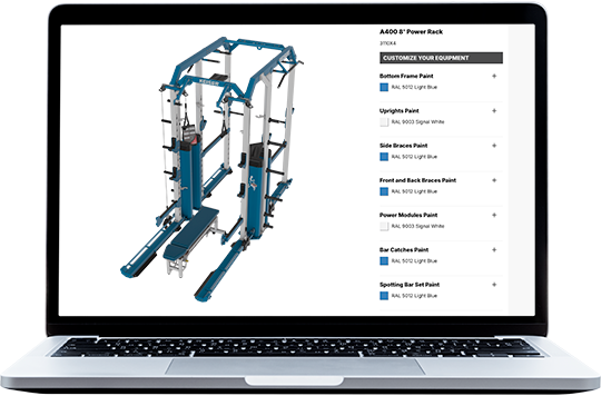 Choose colors, apply your logo, and select accessories with the Keiser Equipment Configurator .