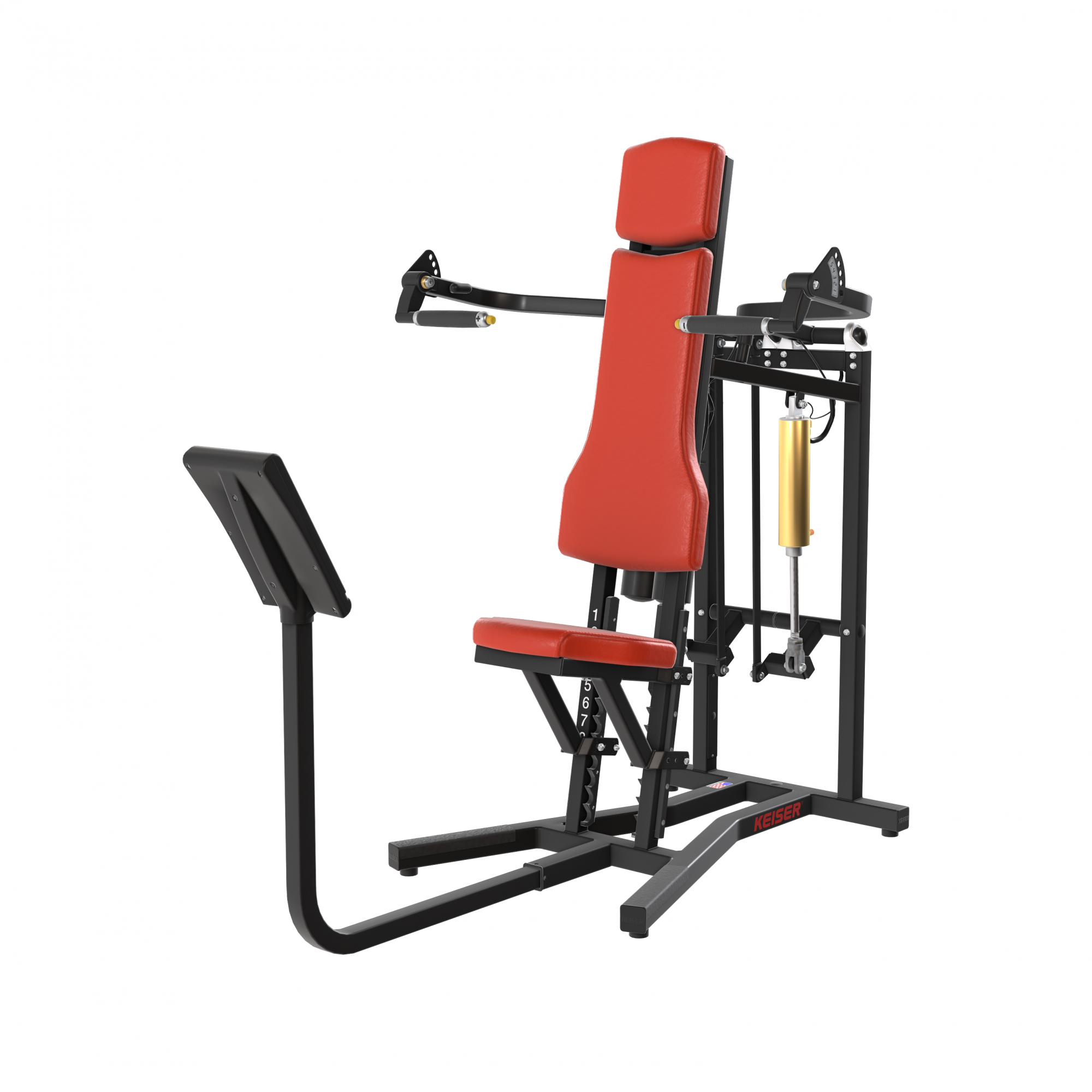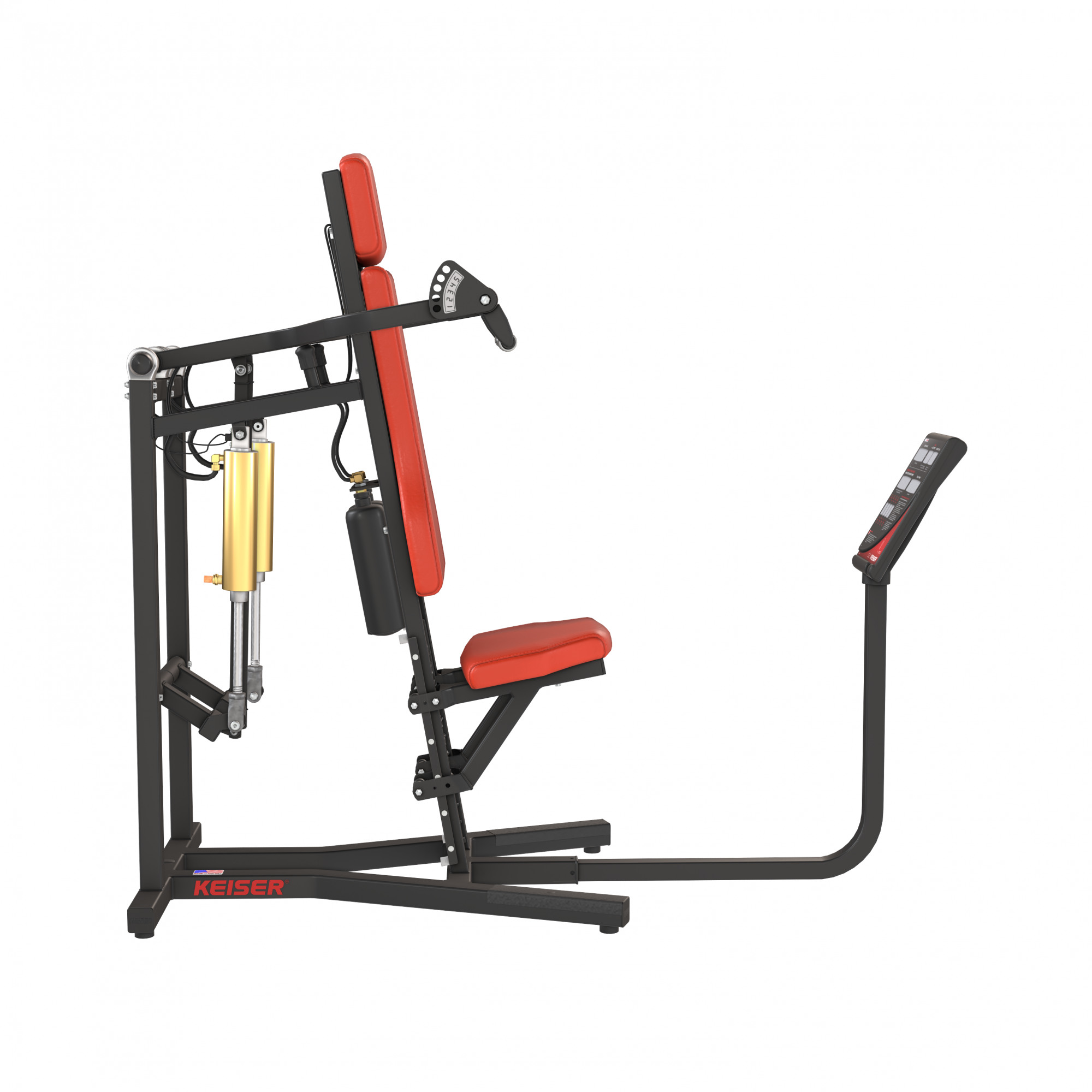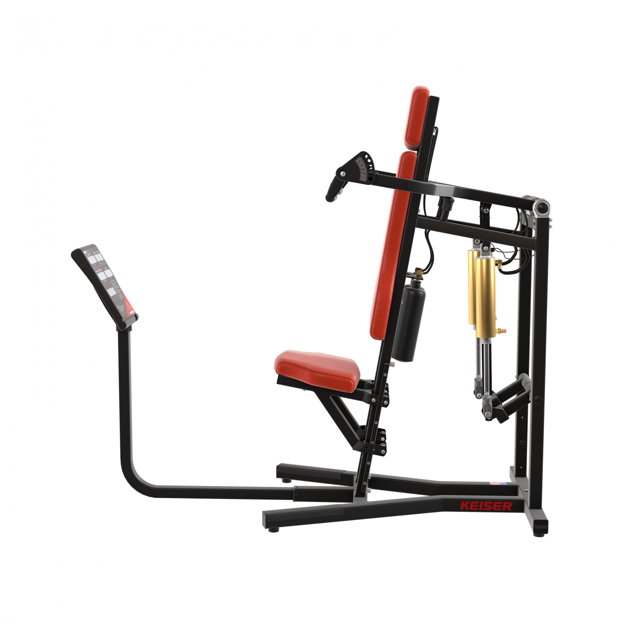 Less resistance where you're weakest: On a military press, you’re weakest at the beginning of the concentric phase. Keiser’s DVR optimizes your starting resistance with lower resistance.